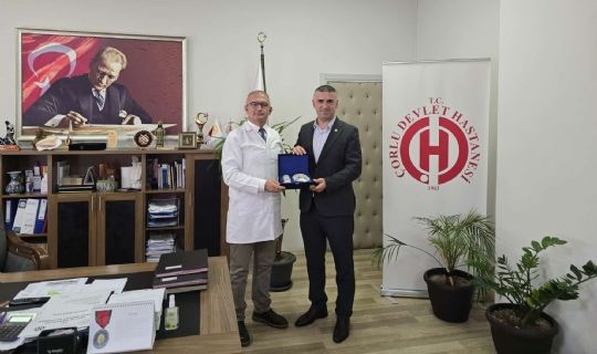Türk Metal sendikası Çorlu Şube Başkanı Caner Alözkan ve beraberindekiler, Çorlu Devlet Hastanesi Başhekimi Doç. Dr. Mustafa Doğan'ı ziyaret etti.