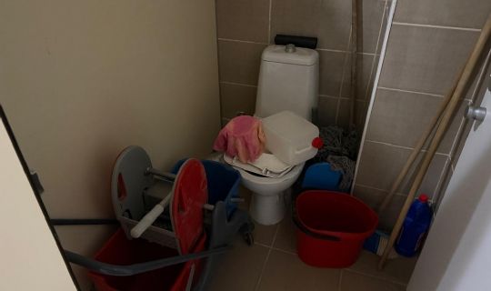 Tuvaletlerin bazılarının kullanıma kapatılarak iptal edilmesi ve hatta daha da trajikomik olarak binlerce ömetrekareden oluşan merkezde temizlik malzemelerinin konulacağı bir yerin olmadığı bahanesiyle kullanıma kapatılan tuvaletlere gelişigüzel istiflenmesi tepkilere neden oluyor.