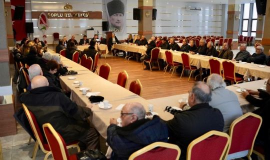 Çorlu Belediye Düğün Salonunda düzenlenen buluşmada, Başkan Sarıkurt emekli vatandaşlarla bir araya gelerek taleplerini dinledi.
